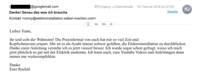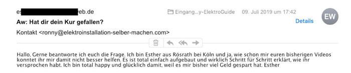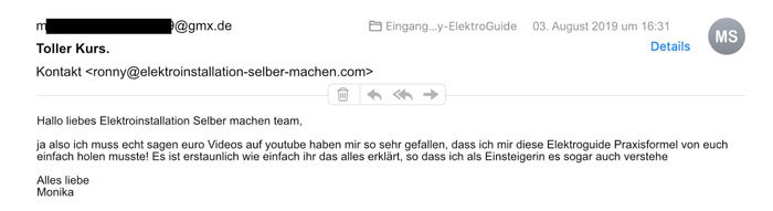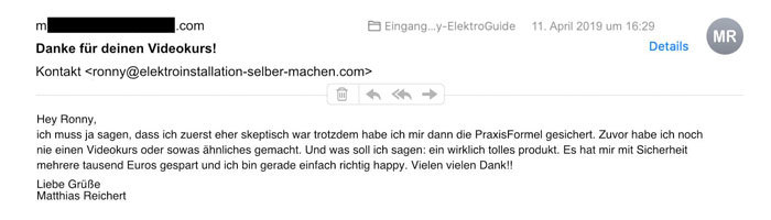 Es ist mittlerweile echt schwer den passenden Handwerker zu bekommen und wenn dann verlangen sie wahnsinnig viel Geld. Bei meinem Anbau letzten Sommer war der Elektriker das Problem. Hab mir eigentlich gesagt von Elektrik lass ich die Finger weg aber dann hätte ich bis Heute noch keinen Strom im Anbau. Mit dem Kurs konnte ich Beleuchtung, Steckdosen, sogar kompliziertere Wechselschaltungen selbst verlegen und anschließen. Das hat sogar richtig Spaß gemacht, weil der gesamte Ablauf einfach, verständlich und anschaulich und wirklich Schritt für Schritt erklärt wird. Ganz toller Kurs Danke dafür, er hat mir sehr geholfen.